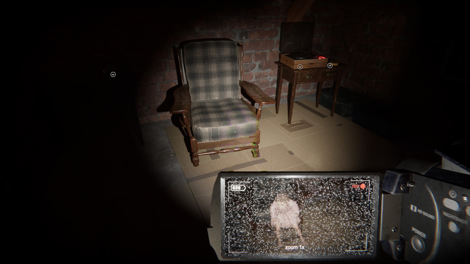 Le gameplay reste fidèle aux standards du walking simulator horrifique, avec des énigmes, de l’exploration et l’utilisation du caméscope pour altérer la réalité, mais ajoute aussi quelques variations bienvenues, jusqu’à proposer des séquences plus atypiques comme dit précédemment. L’ensemble, sans révolutionner le genre, parvient à maintenir l’intérêt grâce à son rythme et ses quelques trouvailles, laissant une impression d’originalité qui fait du bien. On se coltine néanmoins la classique séquence d’infiltration avec un gros monstre bien dégueu qui a tendance à vous repérer facilement et dès qu’on fait un peu de bruit.
